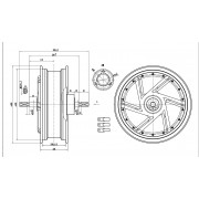 Чертёж мотор колеса QS motor 72v-96v12000w в ободе 13`` для электроскутера, под дисковый тормоз..